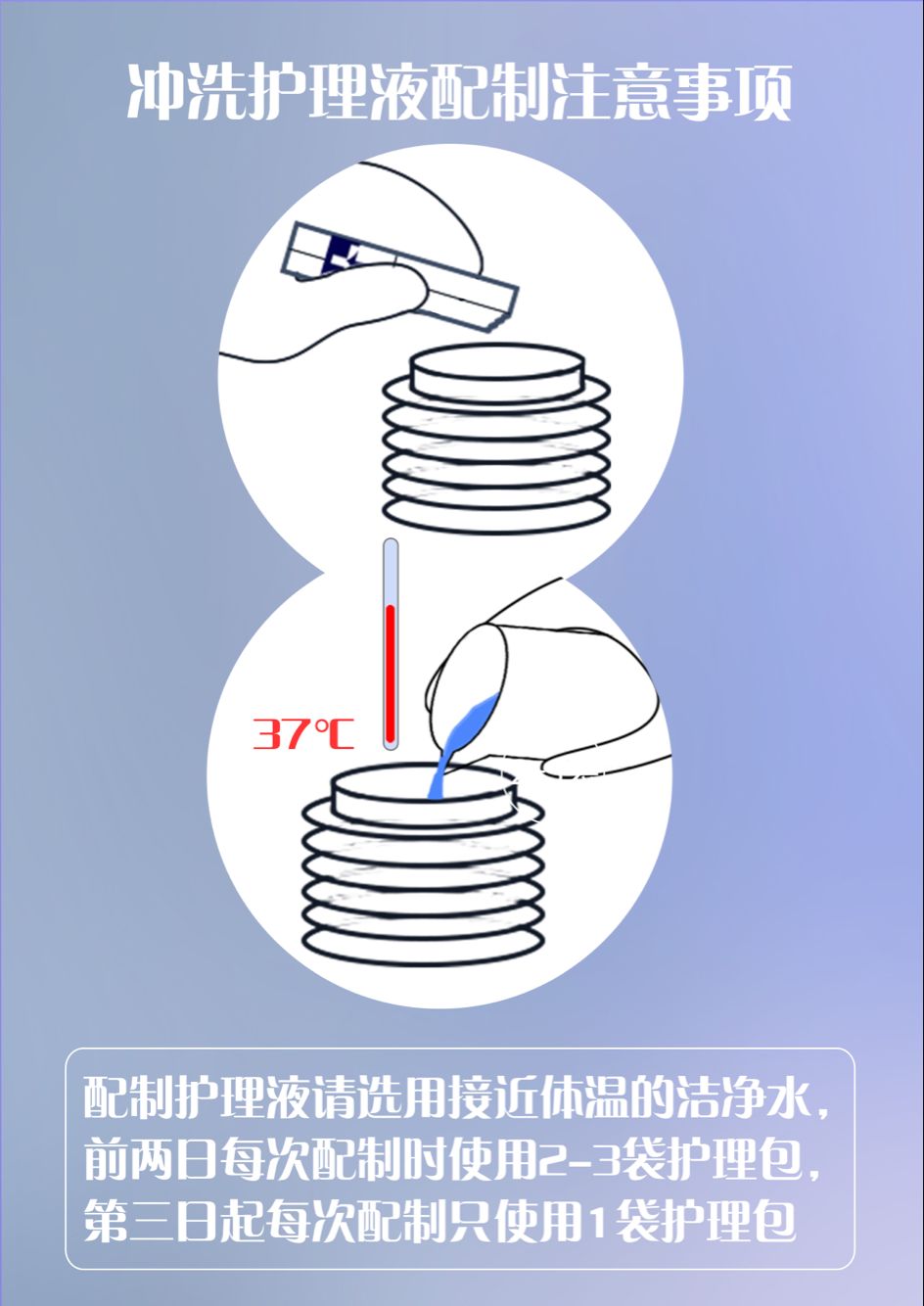 2、護(hù)理包的配制液體溫度36.5-37.5℃。